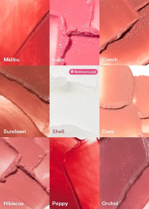 The new Glossy Serum Stick (P399) delivers color and gloss in a convenient balm format. Upon application, it delivers an instant cooling effect that adds visible volume to the lips. It comes in nine (9) shades: Malibu, Lush, Conch, Sundown, Shell, Cove, Hibiscus, Poppy, and Orchid.