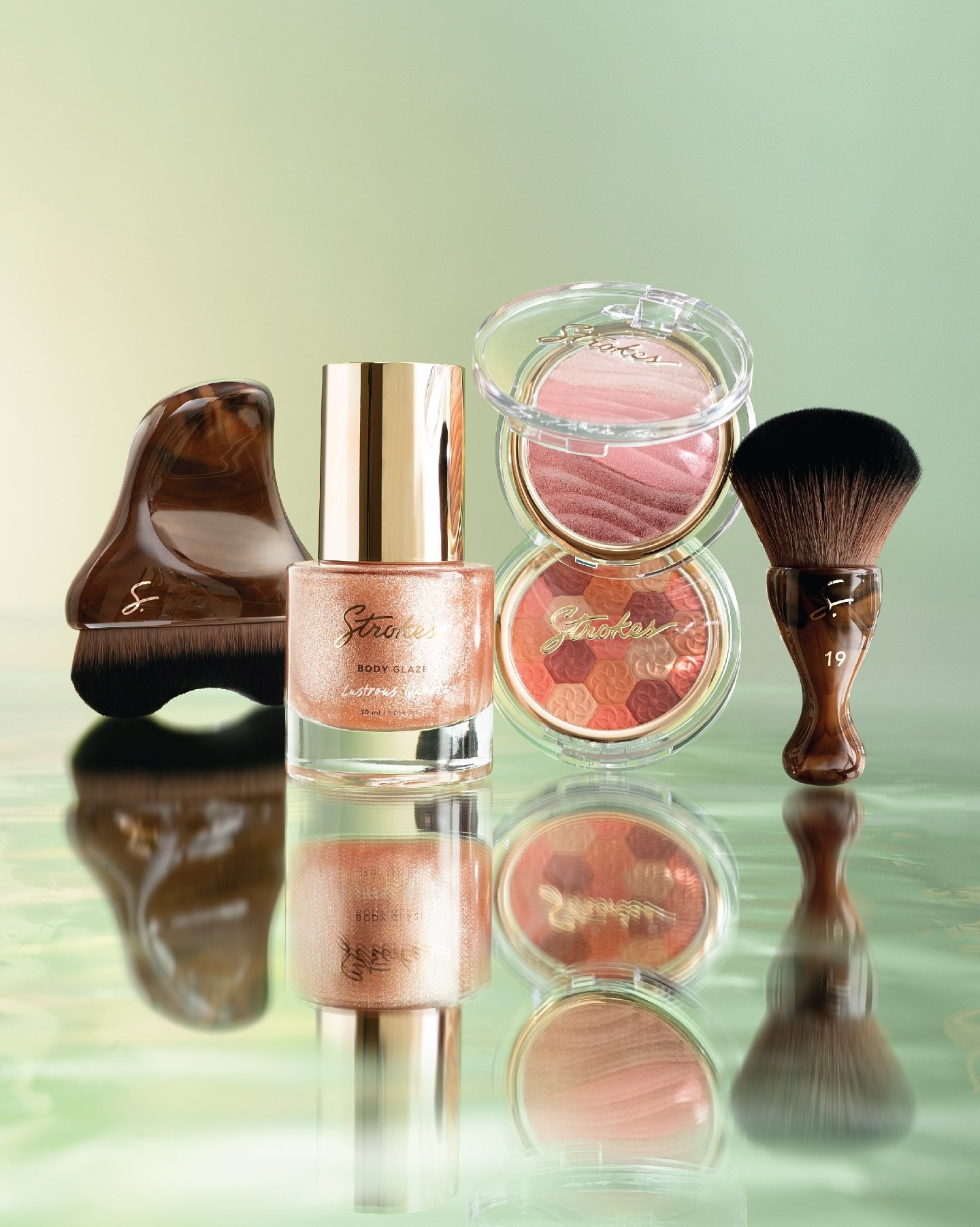 Strokes Cosmetics releases a literally glowing, limited-edition Summer Collection! Look like a desert goddess mirage from head to toe with their Body Glaze, Sakura Mosaic Blush, and Dune Waves Highlighter, complemented with applicator brushes for that seamless glow.
