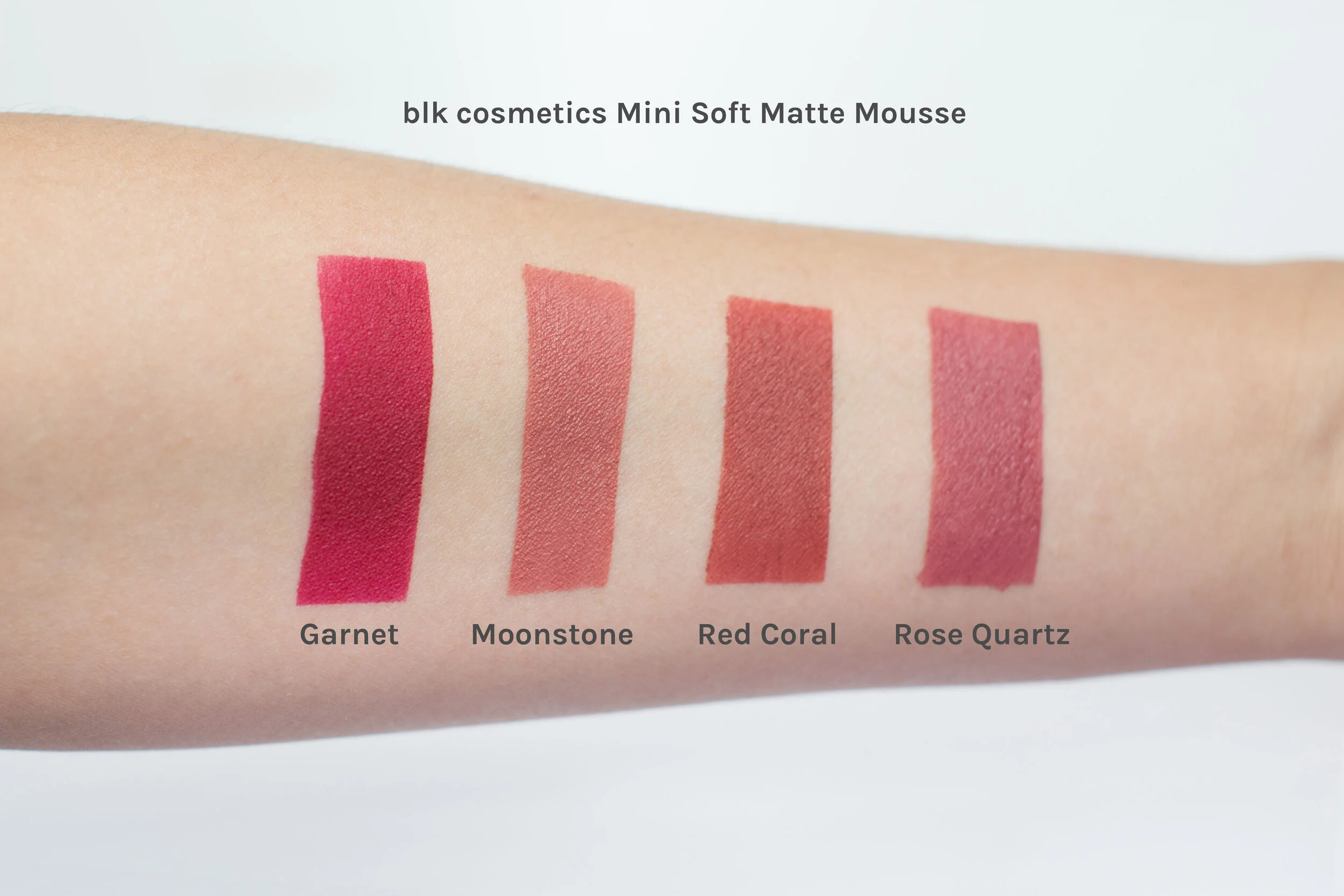 Okay, so I admit to being partial to mini lip products. With the number of lippies in my collection, I rarely get tempted by new releases anymore. But when I see a mini lippie in a shade and finish I don’t have yet, well—that’s a different story! The fact that I can probably finish a (mini) lipstick before it expires on me makes it even more appealing than the urge to try a new shade. So I think it was a smart move by blk to release minis of their soft matte mousses in a range of shades that would appeal to all.