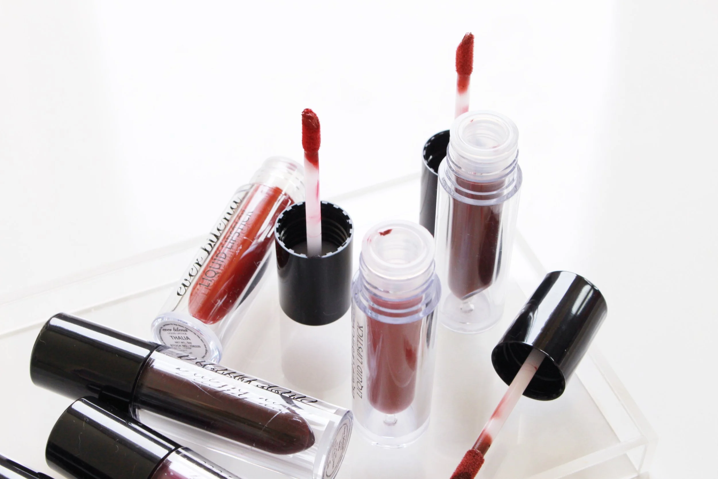 This sets in a minute or so like most liquids and are absolutely scentless. I love that they don't feel caked-up and wrinkly on the lips. I wouldn't say the EB Liquid is moisturizing - you still need a balm underneath! - but they're much less dry and more lightweight compared to the Ever Bilena Matte Liquid Lipstick.