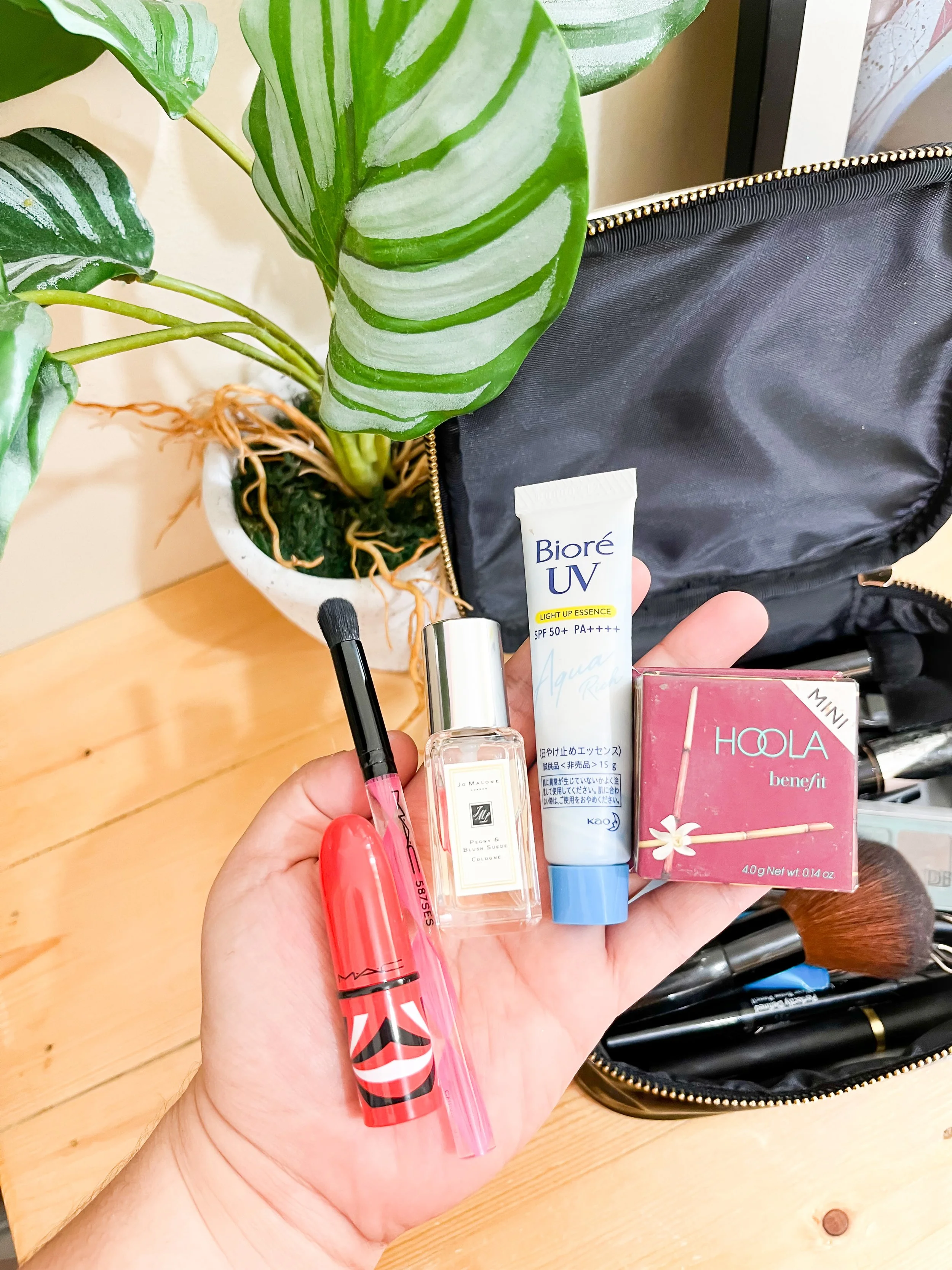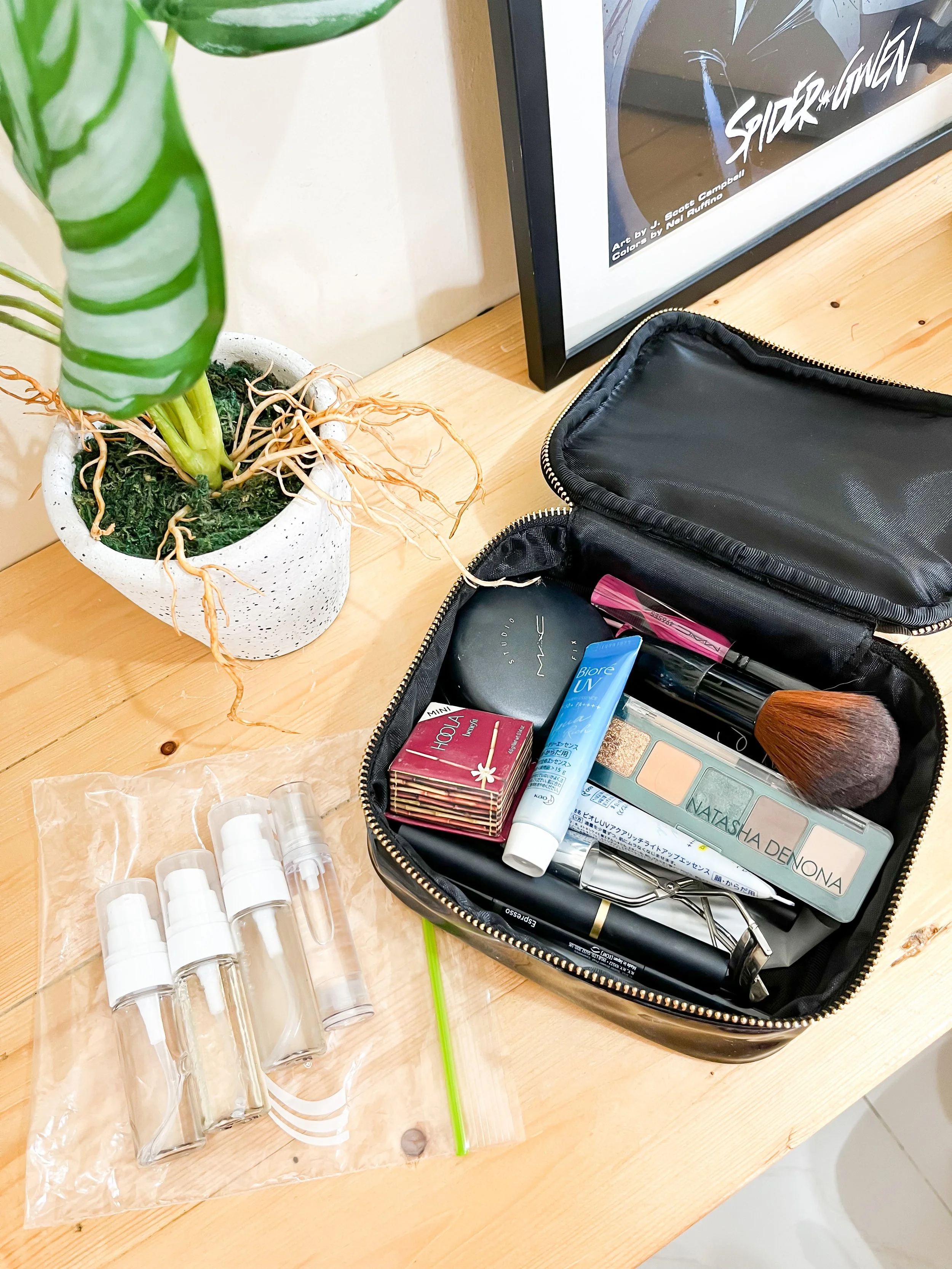 The best way to travel with beauty products though is to find their travel-sized versions. Not only does the packaging look nice in your kit, I find that they’re so much more secure leak-wise! So always ask for GWP (gifts with purchase) from your favorite brands. Luxury beauty brands usually have this!