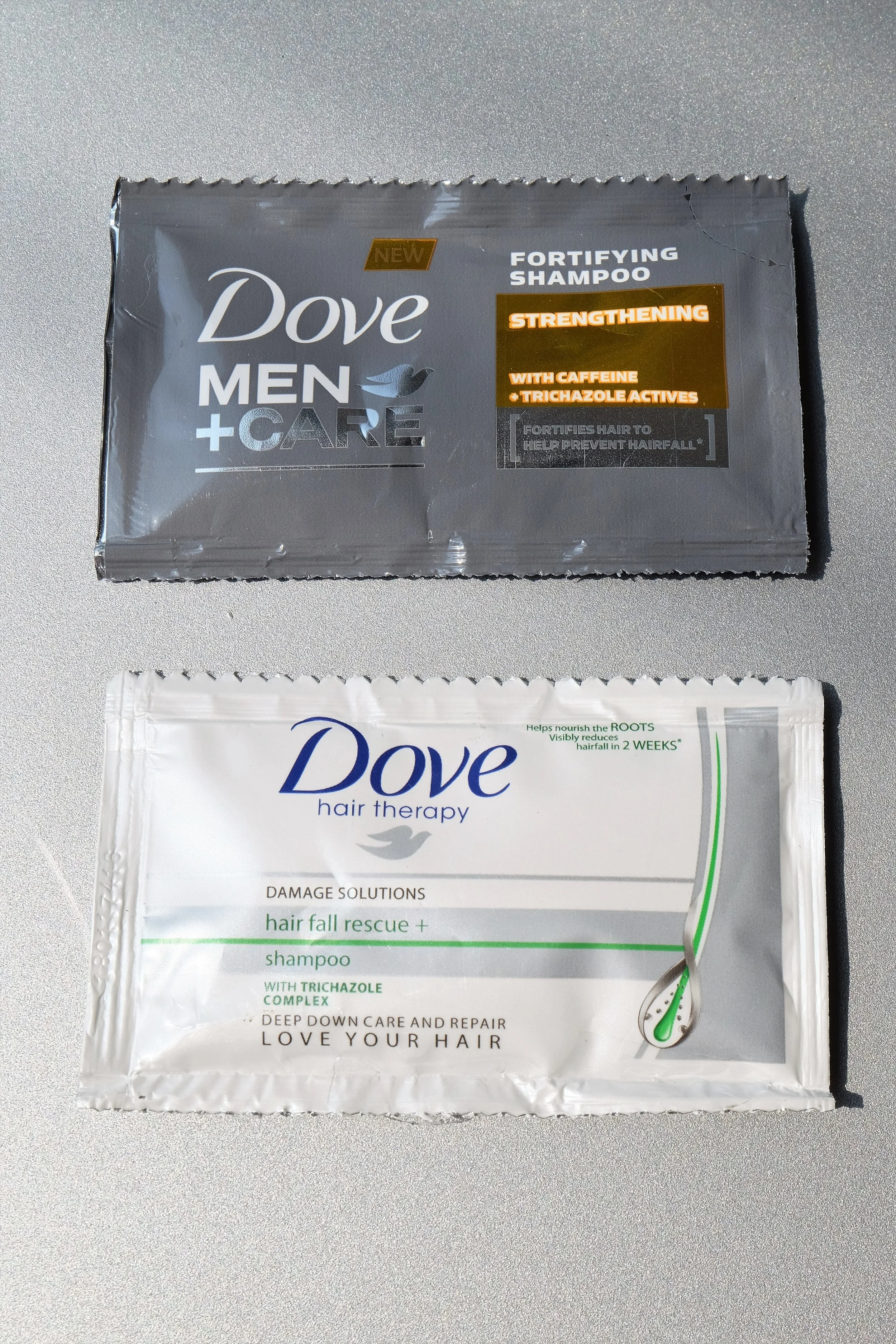 Round 3: Dove Men+Care Fortifying Shampoo and Dove Hair Therapy Damage Solutions Hair Fall Rescue