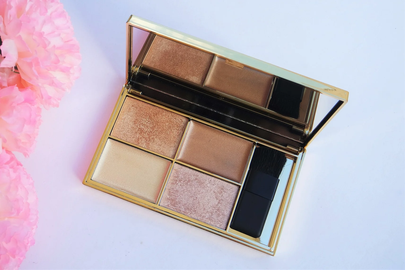 For a holiday strobe-fest, there’s the Highlighting Palette in Cleopatra’s Kiss (P875). While the Solstice palette has an opalescent, pastel feel, Cleopatra’s Kiss is all about creating a summer goddess glow. It looks fine on me (I'm fair, bordering on pale) but I think it will be even more flattering on morena skin.