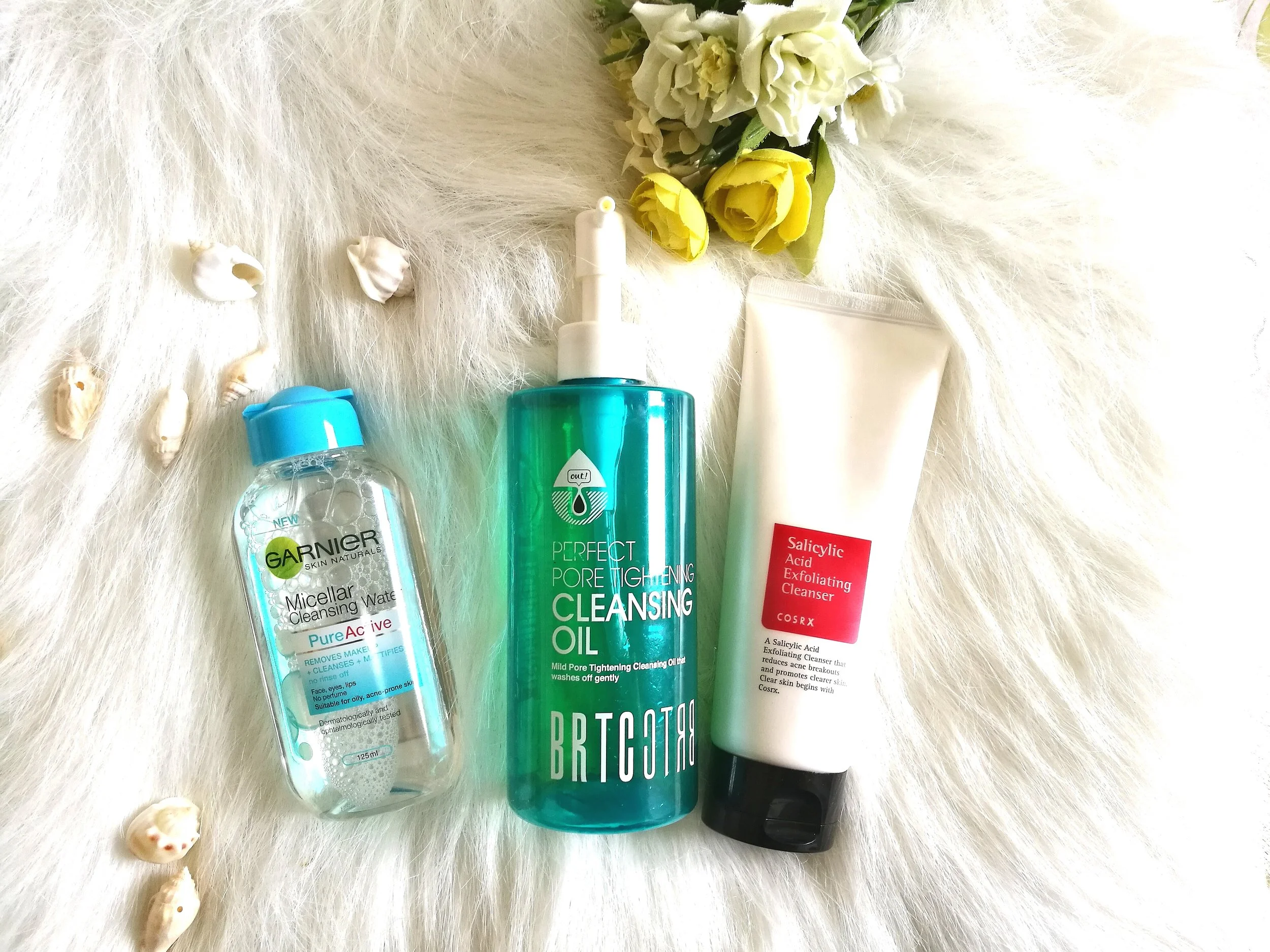 Charlie: I've become addicted to double cleansing ever since I've noticed a major change on how my skin looks right after. I have acne-prone, combination skin so I also make sure to pick out products that can help treat it. No matter what I have on, I use cleansing water on cotton pads as my initial cleanser. I've recently tried Garnier's blue micellar water and I'm liking it so far. I follow up with a cleansing oil like BRTC's Pore Tightening Cleansing Oil to melt the rest of my makeup residue. Afterward, I cleanse with a foaming cleanser; I've been loving COSRX's Salicylic Exfoliating Cleanser recently because it helps treat my troubled skin.