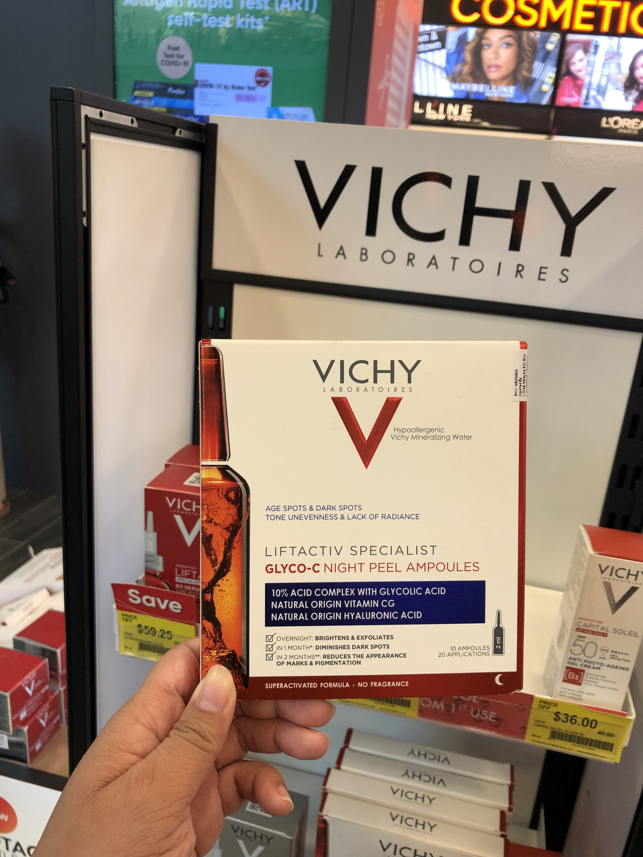 The store reminded me of Watsons back in the Philippines with their stands and counters full of everyday drugstore products. Taking a poke around, I found brands that I’ve never even heard of. An interesting find is the Vichy Glyco-C Night Peel Ampoules on sale at $39, which seemed like the perfect addition to a night time routine.